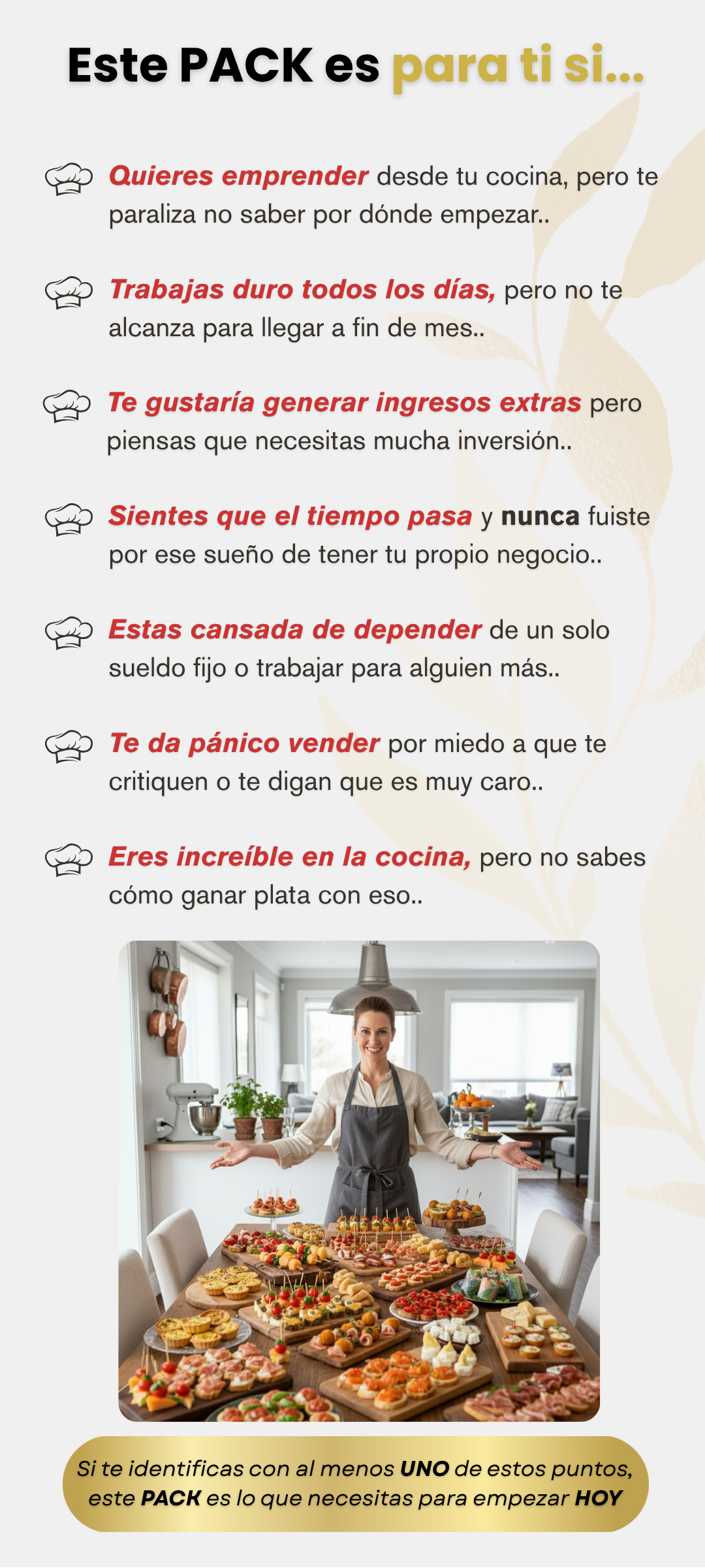 No. El Pack 7x1 te guía paso a paso con recetas simples, tiempos claros y guías de presentación. Si ya cocinás, ampliás catálogo; si querés emprender, incluye nociones básicas para empezar con confianza.